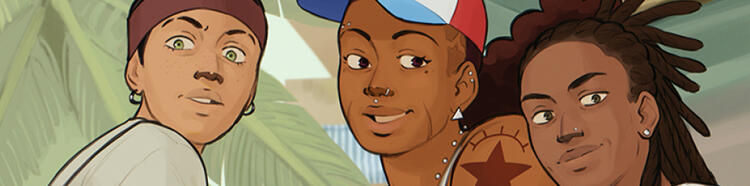 Best friends Aariyah, Jaylin and Keisha’s lives are disrupted by a gang wreaking havoc in their community using enhanced elemental abilities.Onti is my ongoing webcomic (which I hope to print in future), specifically centred around Black / BIPOC, queer characters and my appreciation of CapoeiraUploaded chapters can be read FOR FREE on Onticomic.com, Tapas or Webtoon